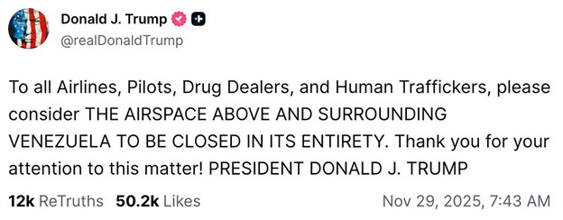 The administration’s public statements directly relate to the interruption of the flow of illegal narcotics and migrants coming into the country. On December 18, 2025, the Washington Post reported that White House Deputy Chief of Staff Stephen Miller’s larger goal for expanded U.S. military operations is reducing the flow of drugs and migrants into the United States. Miller believed that attacking drug cartels would diminish their power, thereby stabilizing Latin American countries and reducing the number of people risking the trek to the United States. The administration speaks of Mexican drug cartels as well cartels sponsored by the Venezuelan government. On November 29, 2025, the President posted on Truth Social: