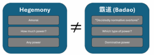 Figure 2: A graphic showcasing the difference between the contemporary Western definition of hegemony in strategic studies and the commonly-accepted Chinese word for hegemony, badao.