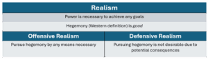 Figure 3: A table to display the difference between offensive and defensive realism.
