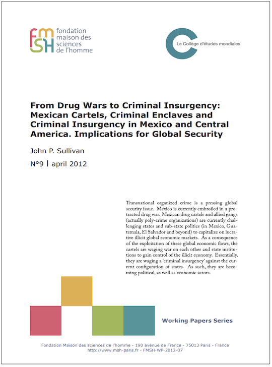 John P. Sullivan, From Drug Wars to Criminal Insurgency: Mexican Cartels, Criminal Enclaves and Criminal Insurgency in Mexico and Central America. Implications for Global Security. Working Papers Series. Paris: Fondation Maison des Sciences de l’Homme. No. 9. April 2012: pp. 1–20, https://shs.hal.science/halshs-00694083v1/document: