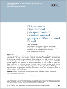 John P. Sullivan, “Crime Wars: Operational Perspectives on Criminal Armed Groups in Mexico and Brazil.” International Review of the Red Cross. Vol. 105, no. 923. June 2023: pp. 849–875, https://international-review.icrc.org/articles/crime-wars-operational-perspectives-923: