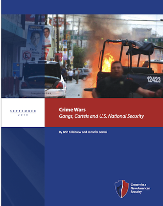 Bob Killebrew and Jennifer Bernal, Crime Wars: Gangs, Cartels and U.S. National Security. Washington, DC: Center for a New American Security, September 2010: pp. 1–84, https://www.files.ethz.ch/isn/121926/2010-09_CrimeWars_KillebrewBernal.pdf.