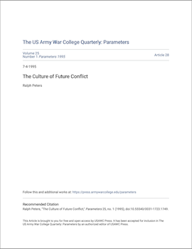 Ralph Peters, “The Culture of Future Conflict.” Parameters. Vol. 25, no. 1. Winter 1995-96: pp. 18–27, https://press.armywarcollege.edu/cgi/viewcontent.cgi?article=1749&context=parameters: